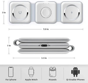 Charge your phone, Apple Watch, and AirPods all at once! This versatile wireless charger is compatible with AirPods 2/3, AirPods Pro/Pro 2, and Apple Watch Series 6/5/4/3/2/SE.